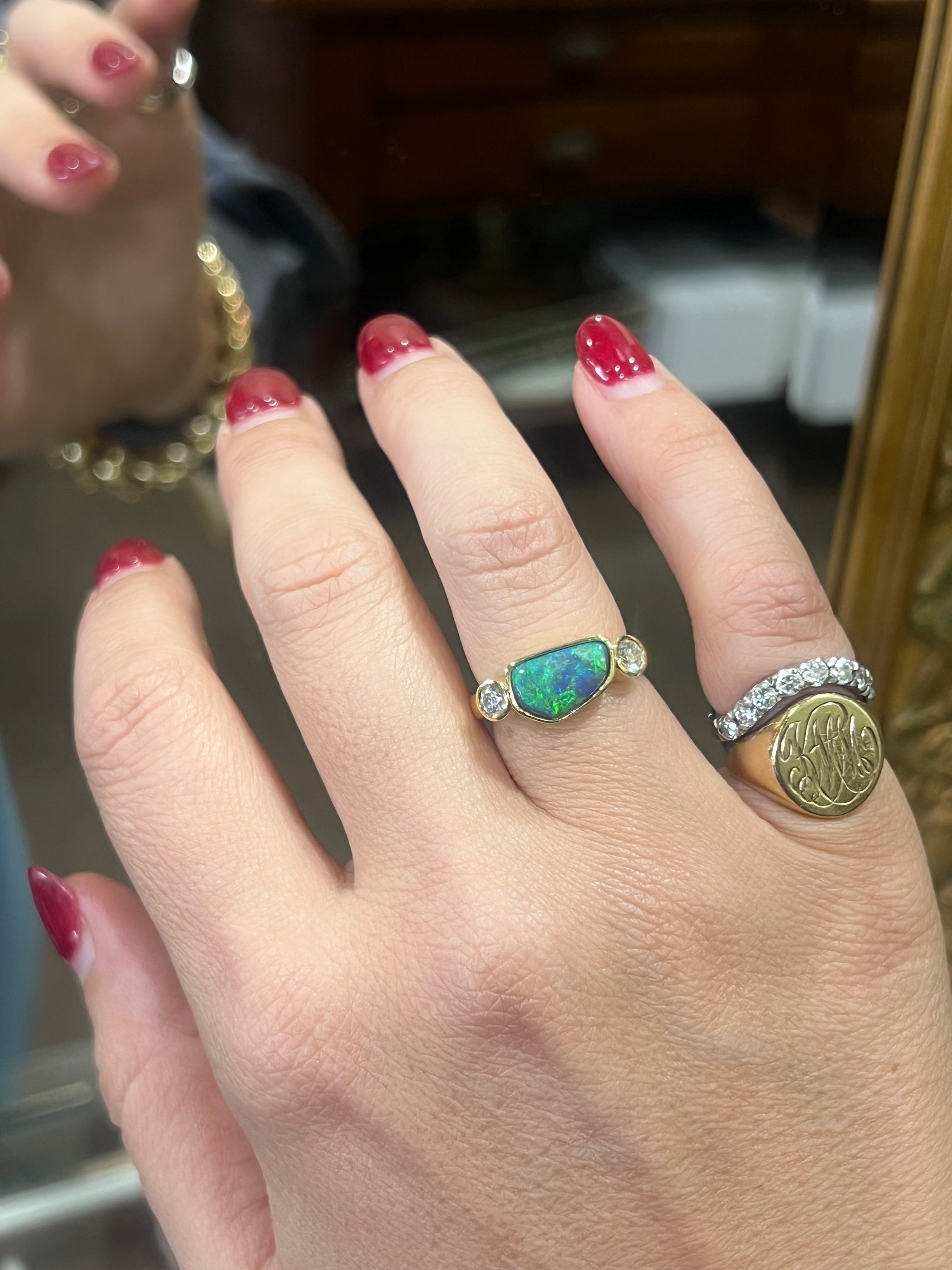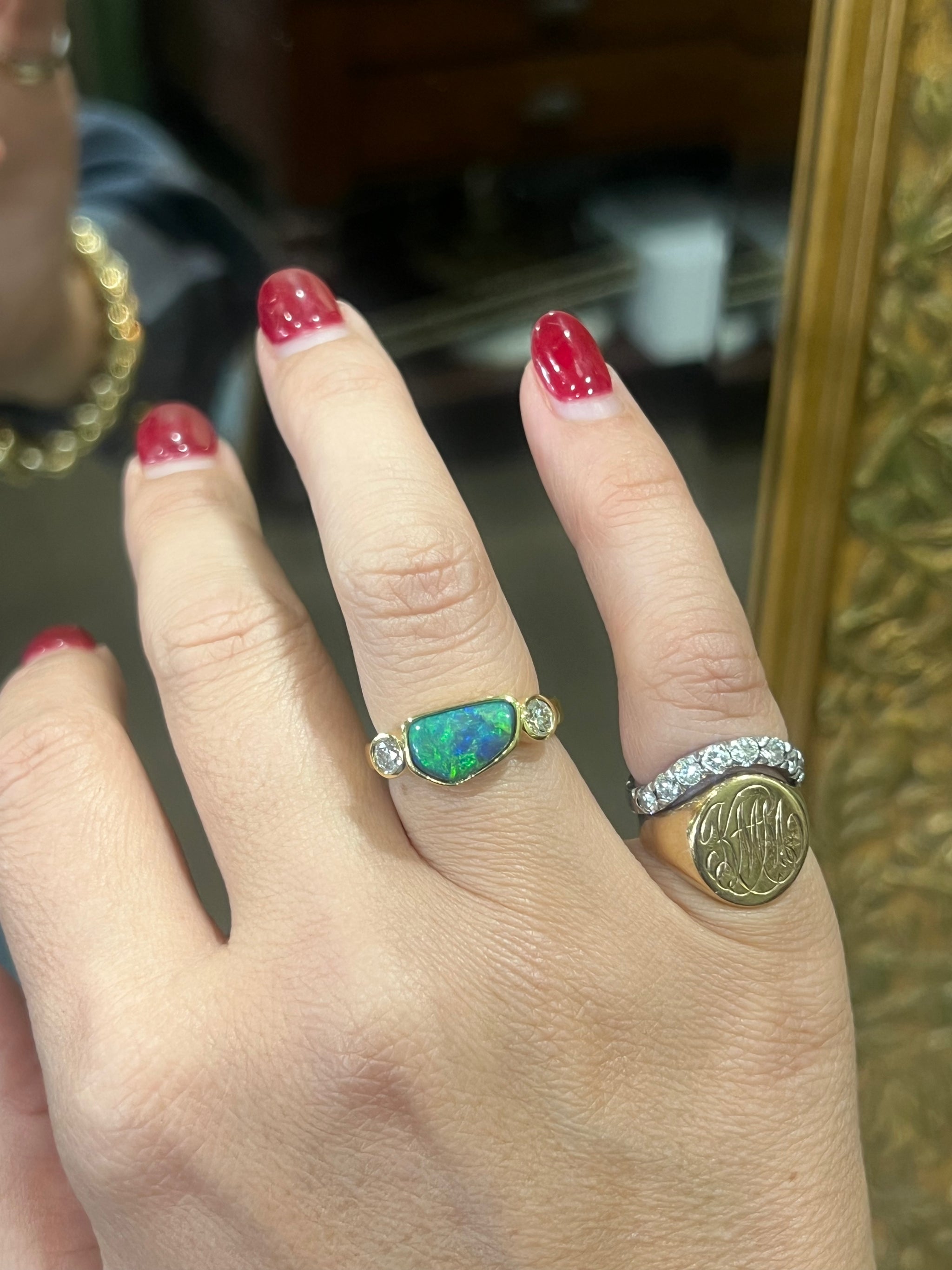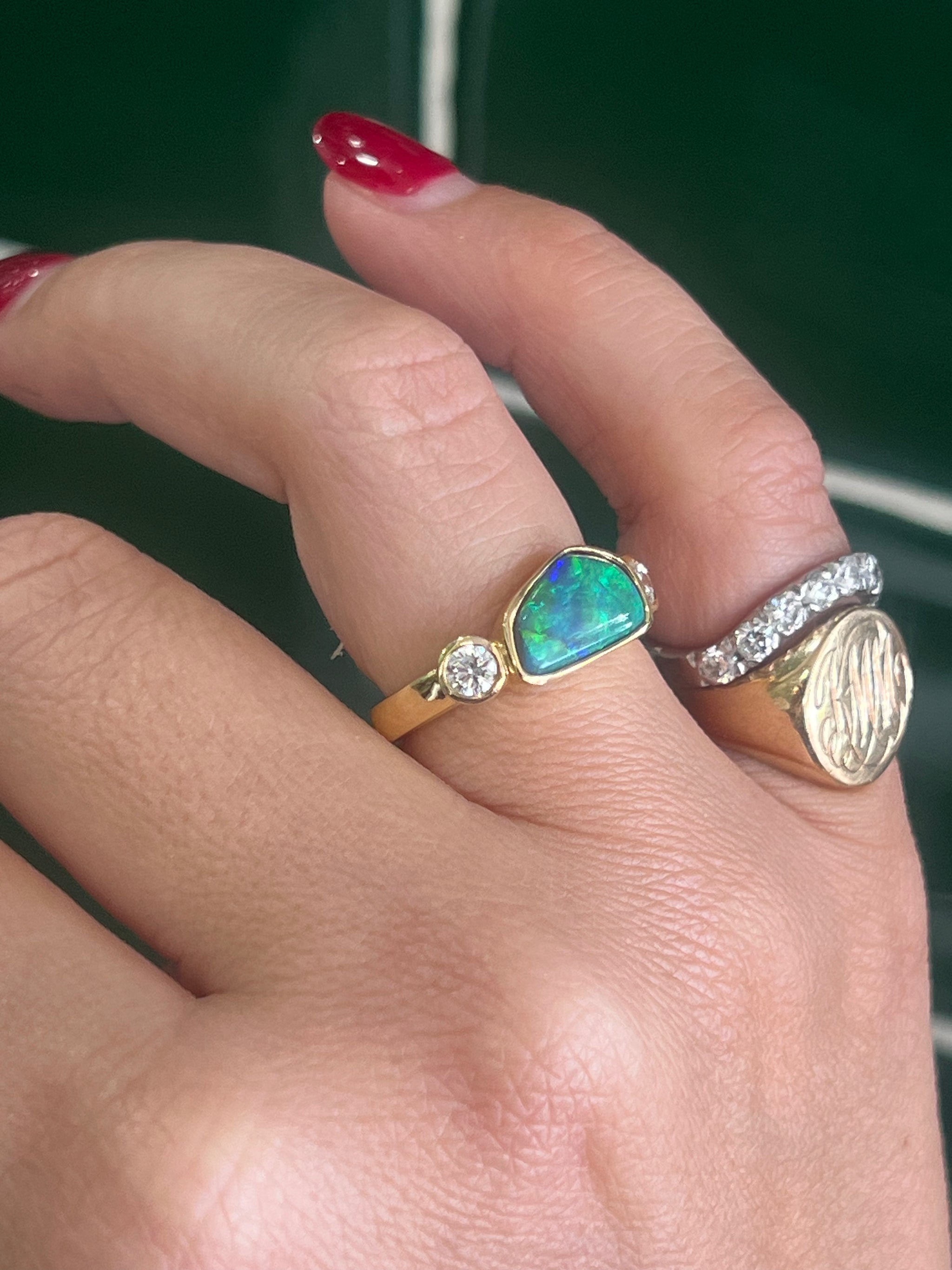 Australian Boulder Opal and Diamond Ring in 18ct Yellow Gold