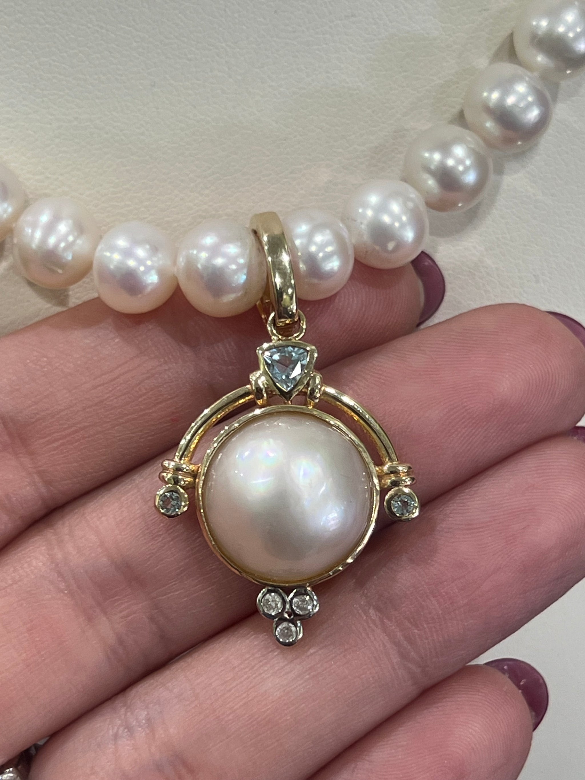 Mabe Pearl, Diamond and Topaz Enhancer in Yellow Gold