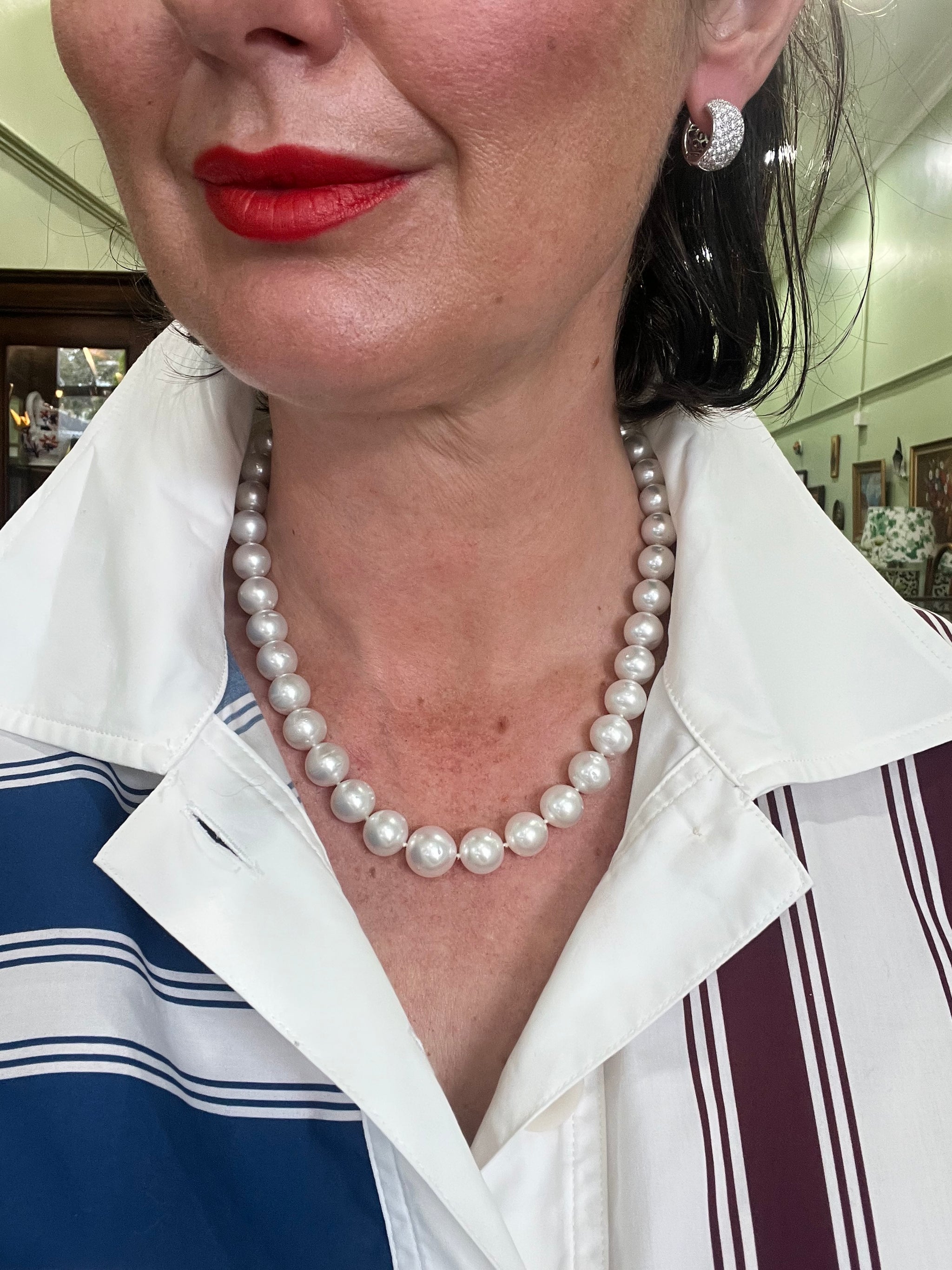 A lustrous stand of Australian South Sea Pearls, finished with a white gold clasp.   Sophisticated style at its best.