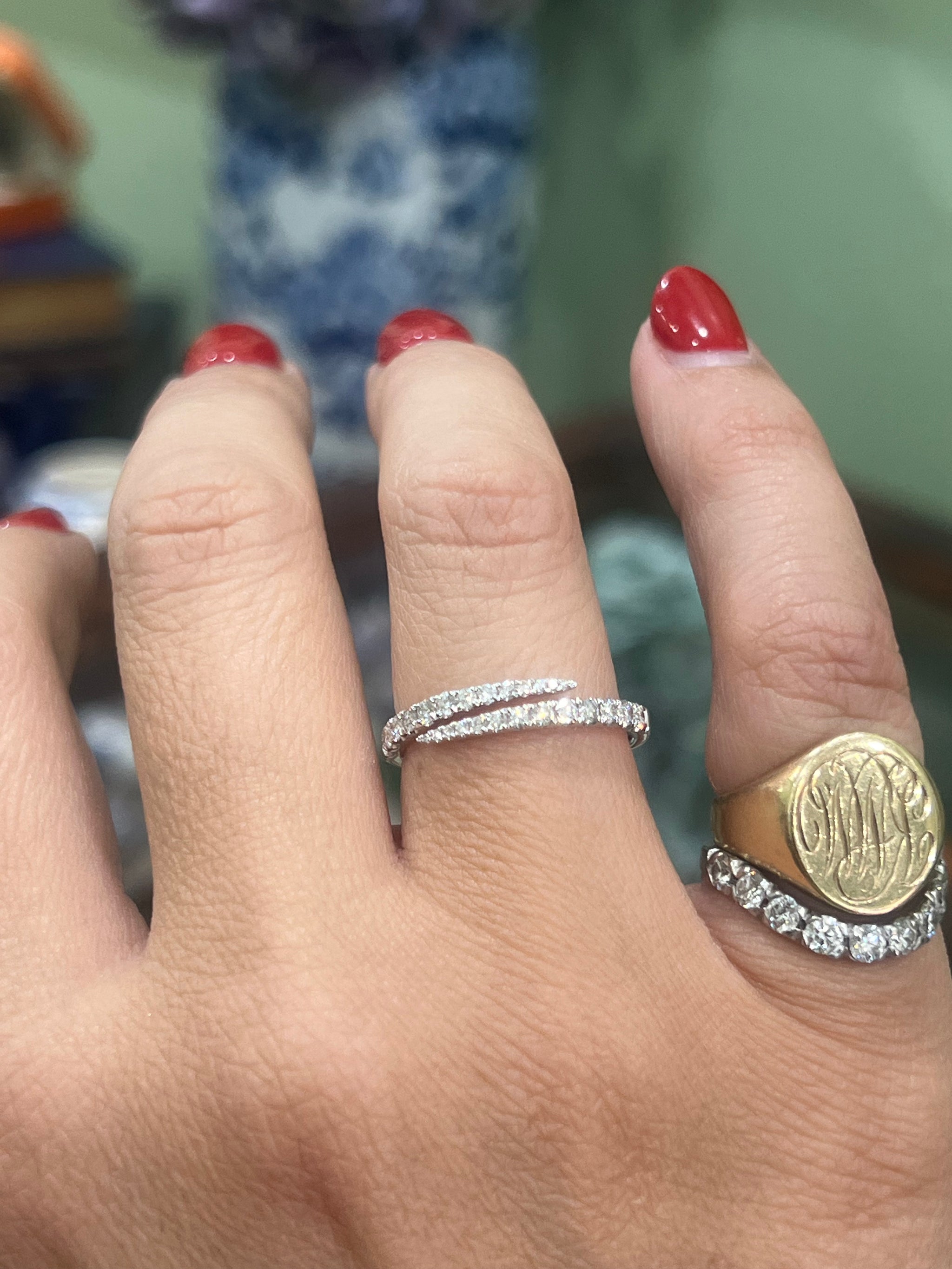 This beautiful 'Diamon Wrap' ring, is set with half a carat (0.50ct) of Round Brilliant Cut diamonds, graded E VS in colour and clarity. Manufactured to perfection in 18ct white gold.