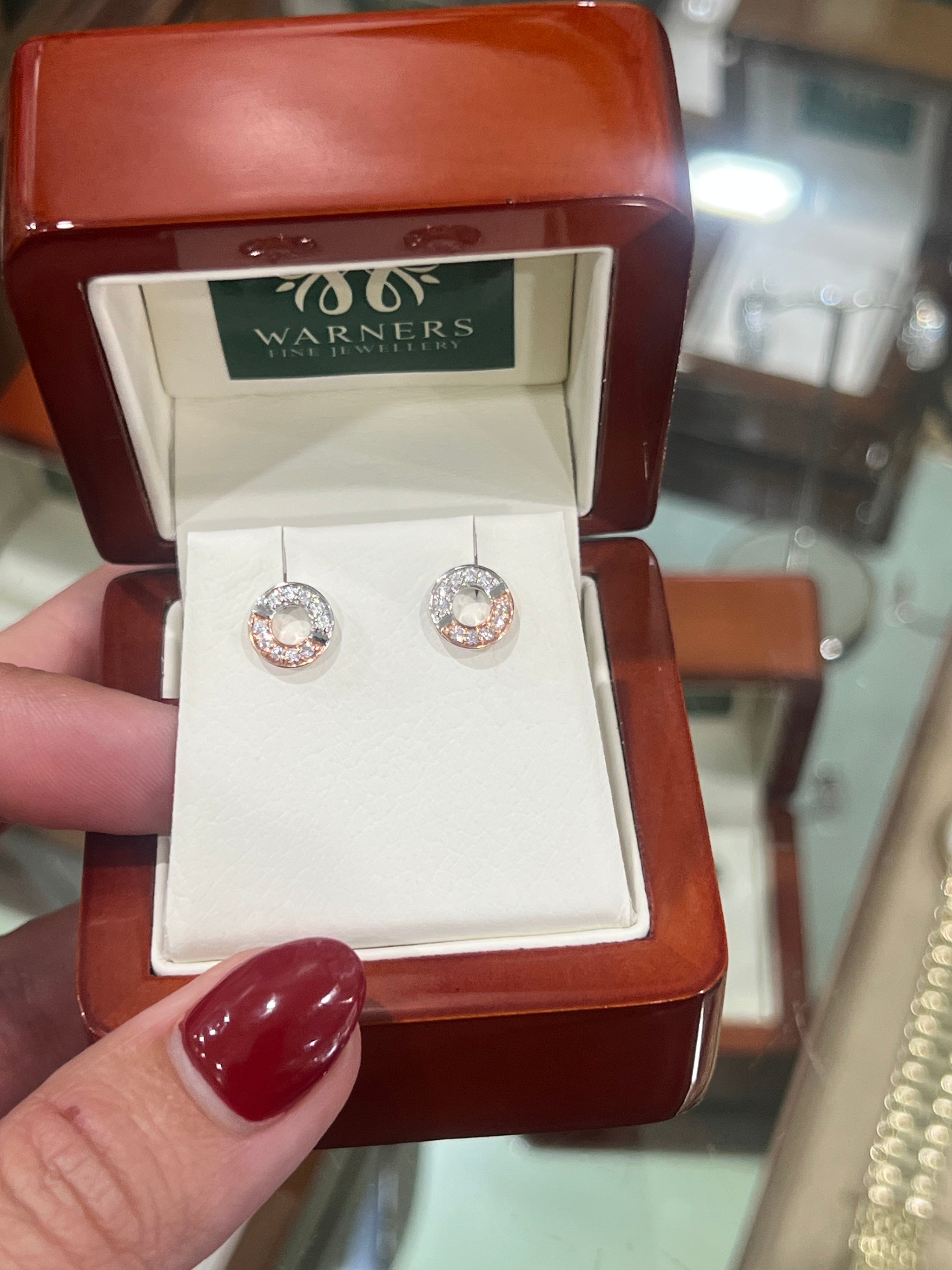 The earrings have 0.09ct of Pink Argyle Diamonds and 0.09ct of white diamonds.